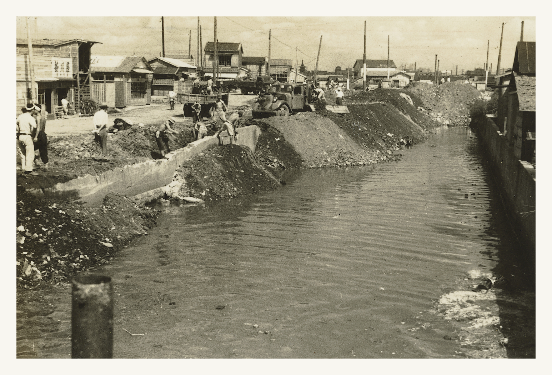 六間堀が埋め立てられている最中とされる一枚の写真があります。
